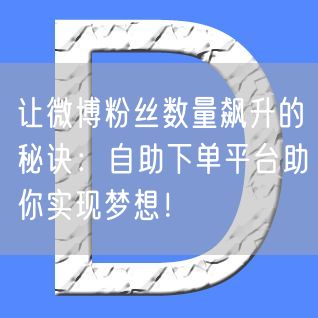 在当今社交媒体时代,微博作为国内最具影响力的平台之一,粉丝数量直接决定了个人或品牌的影响力。然而,如何快速提升微博粉丝数量成为许多人的难题。今天,我们将揭秘一种高效的方法——自助下单平台,助你轻松实现粉丝数量飙升的梦想!